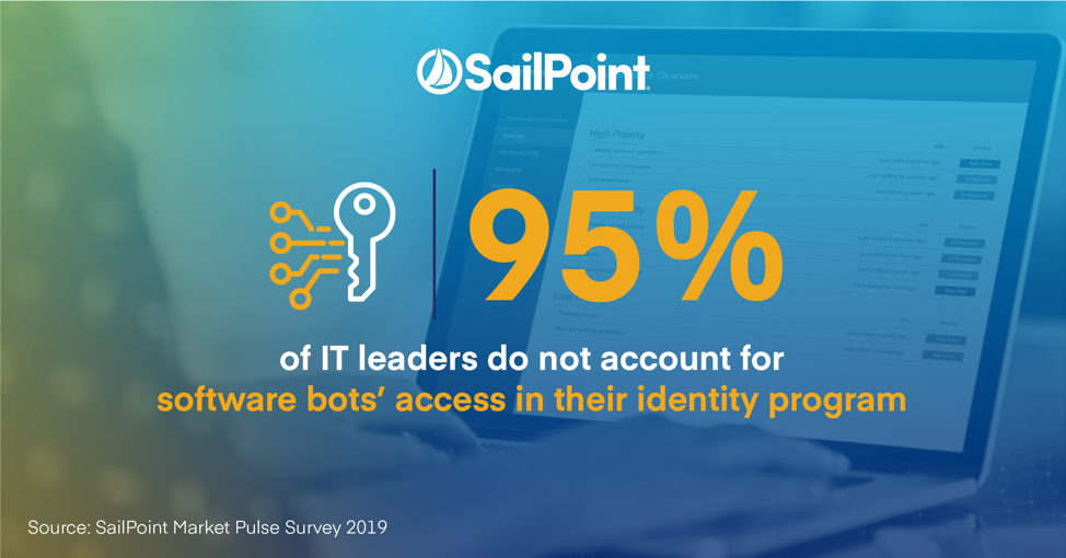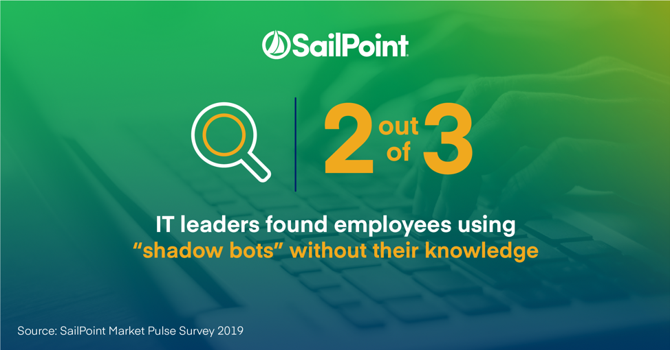 Der alarmierende Mangel an Sichtbarkeit bei Bots ist aber noch nicht alles – es gibt noch ein weiteres Sicherheitsproblem. Zwei von drei Befragten gaben nämlich an, festgestellt zu haben, dass Mitarbeiter ihres Unternehmens ohne Kenntnis der IT-Abteilung Bots verwendeten. Diese „Schatten-Bots“ läuten eine neue Runde von Sicherheitsrisiken für Unternehmen ein. Ähnlich wie bei der sonstigen Schatten-IT werden auch Schatten-Bots von Teams eingesetzt, um unternehmensweit repetitive Geschäftsprozesse zu automatisieren. Theoretisch mag diese Idee auch produktiv klingen, doch in der Praxis tut sich hier ein ganz neues Universum voller sicherheitsrelevanter Probleme auf, die die IT-Teams bewältigen müssen. Die Mehrheit dieser Probleme fällt (zum Glück) in den Bereich des Identitätsmanagements.